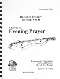 Dulcimer-Friendly Worship Vol 2: a service of Evening Prayer COMPLEAT (musical notation and tablature) with Recording downloadable Book/CD is available for purchase here. (white book & CD)